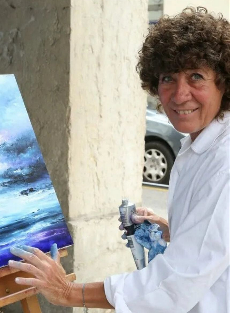 Florence V. peint ... sans pinceau ... du bout des doigts. Peinture à l'huile réalisée aux doigts, mêlant douceur et énergie.